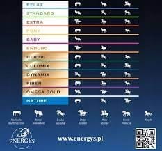 Aby prawidłowo żywić, warto pamiętać o pierwotnym środowisku koni i naturze, dlatego formuła pasz Energys opiera się na naturalnym sposobie odżywiania. Domem koni zawsze były rozległe zielone tereny pokryte bujną trawą, która stanowiła główny element pożywienia. Ich układ trawienny idealnie przystosował się do tej formy pokarmu, dlatego zmodyfikowaliśmy skład paszy, zmniejszając zawartość zbóż i zamieniając je na paszę objętościową, aby najlepiej zaspokajać potrzeby koni. Energys to pasze, z których można stworzyć porcje pokarmu właściwe dla koni do jazdy rekreacyjnej oraz koni sportowych czy też roboczych. Jednak nikt nie zna konia lepiej niż jego właściciel. Dlatego oferujemy naszym klientom możliwość mieszania pasz, aby stworzyć porcję pokarmu idealnie dopasowaną do prawdziwych potrzeb żywieniowych koni.