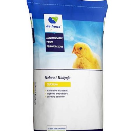 Pasza dla kur niosek Odchów 1 typu starter w formie kruszonki, przeznaczona od 1. dnia do 9. tygodnia życia włącznie.